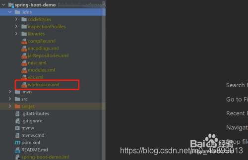 1.打开idea,在左侧项目展示栏中找到.idea,双击打开.idea