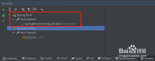 4.保存配置文件,重启idea开发工具,重启项目,此时可以在下方工具栏Services窗口看到如图的执行窗口了
