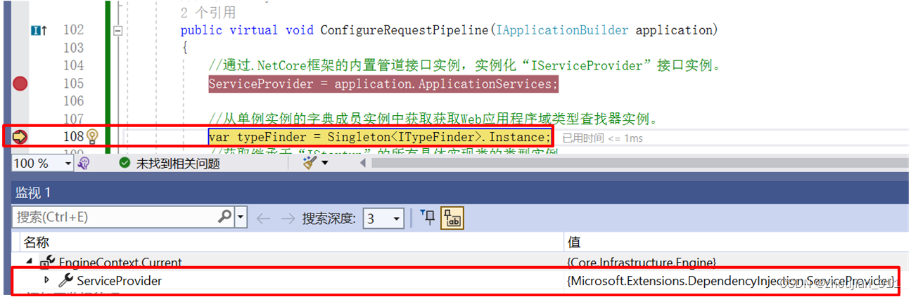 public virtual void ConfigureRequestPipeline(IApplicationBuilder application){//通过.NetCore框架的内置管道接口实例,实例化“IServiceProvider”接口实例。ServiceProvider = application.ApplicationServices;//从单例实例的字典成员实例中获取获取We
