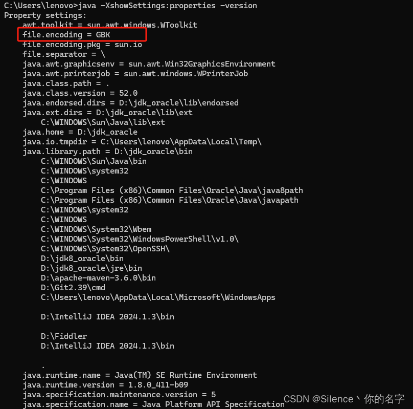 如果在输出中你仍然看到 sun.jnu.encoding = GBK,请注意这表示Java在与操作系统交互时使用的编码,可能因为操作系统的默认编码是GBK。只要 file.encoding 是 UTF-8,你的Java应用程序将使用UTF-8编码。