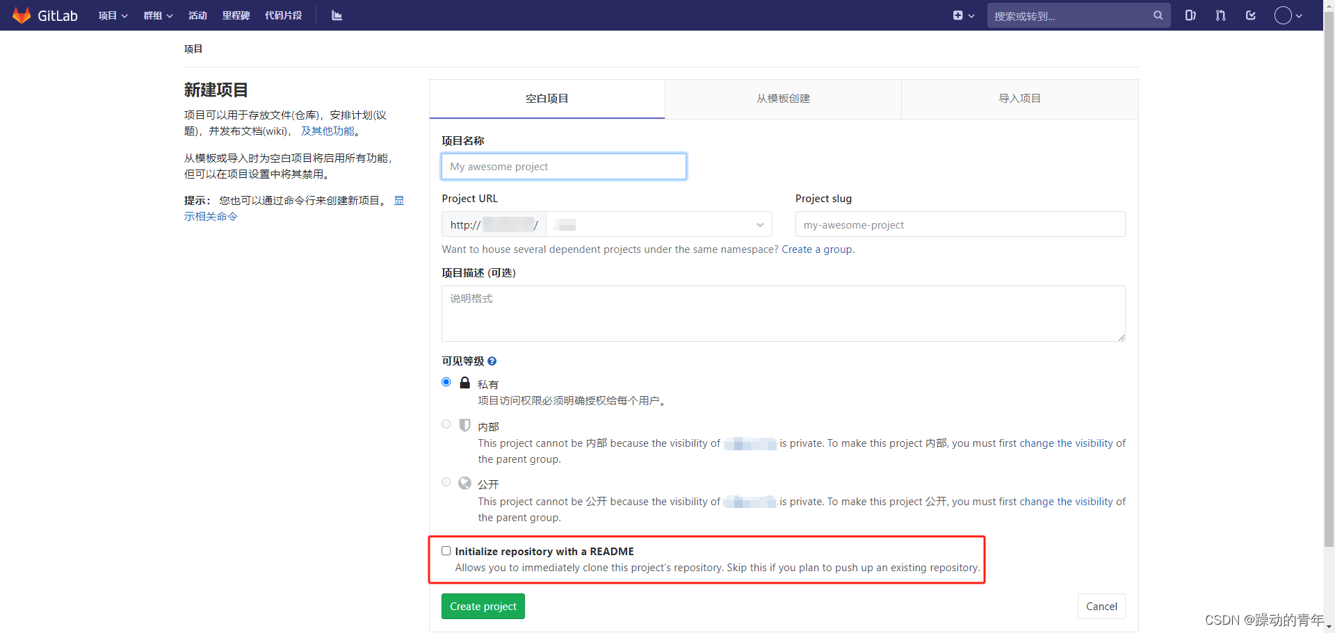 一、在gitlab上新建项目