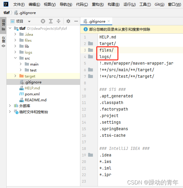 2、编辑gitignore文件,把排除的加上