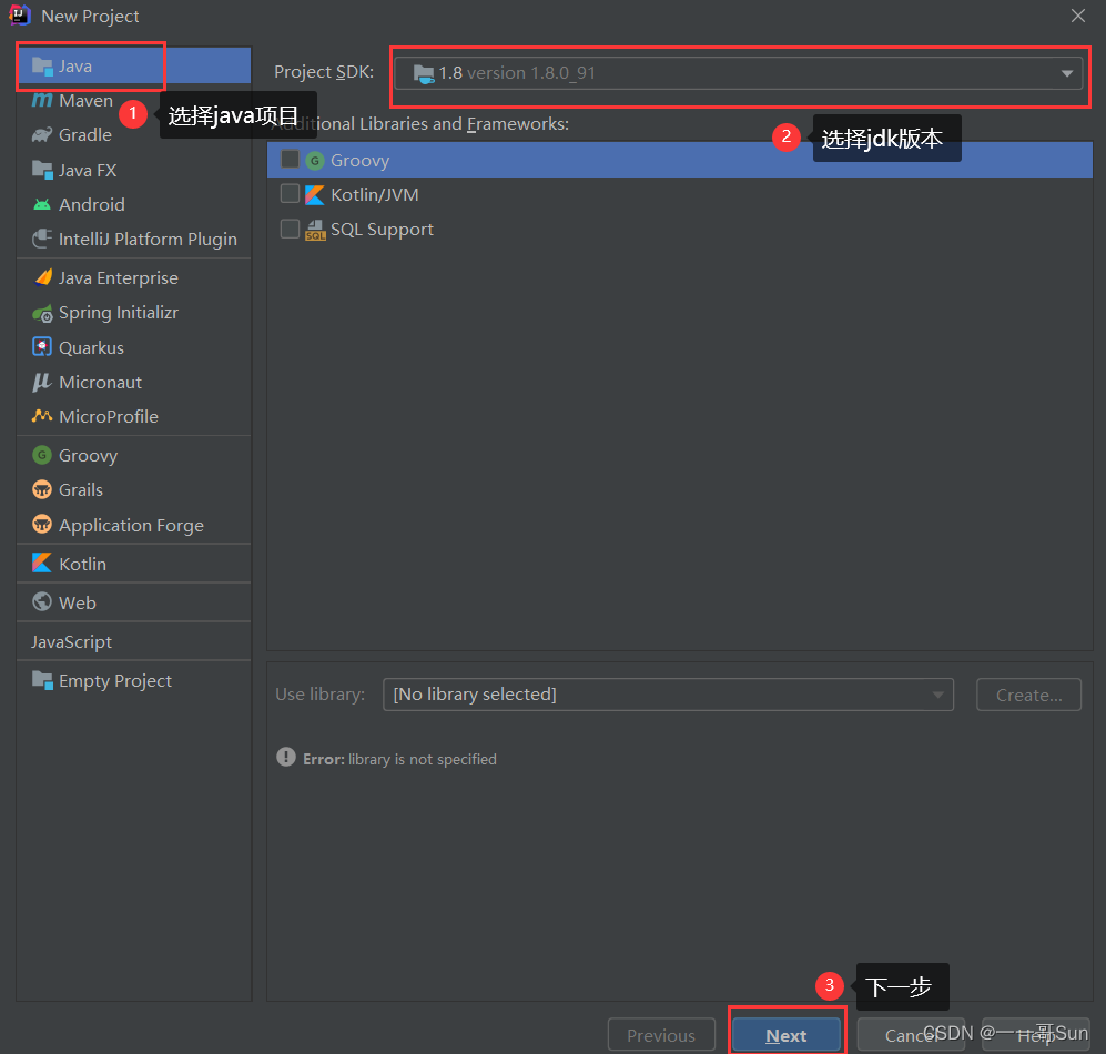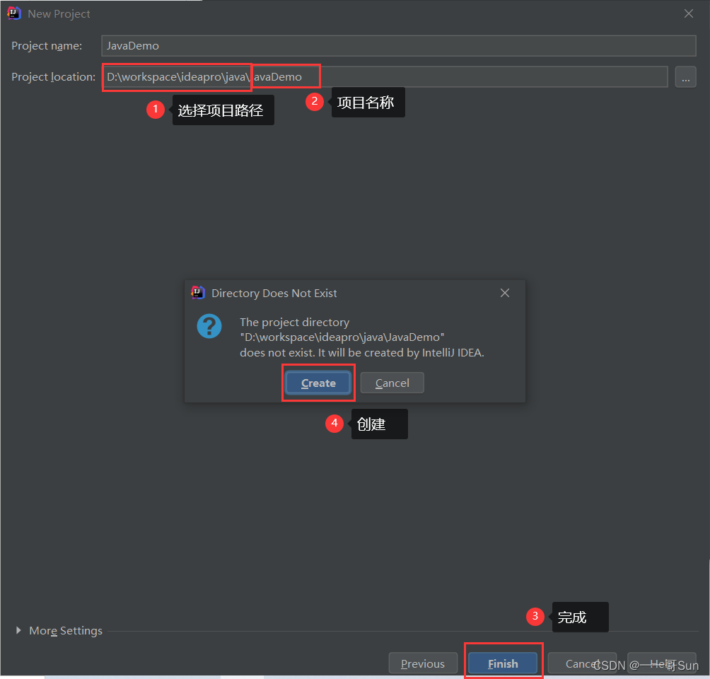 对于我们初学者来说,我们可以选择创建java项目以及自己安装的JDK。