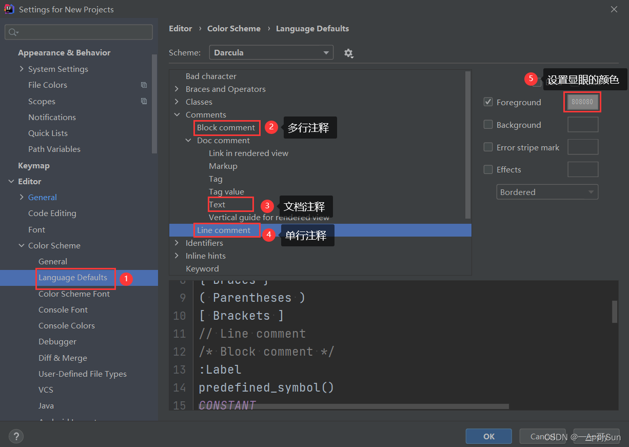注释光标所在行代码或者注释选中的行代码(必备) 单行注释 |