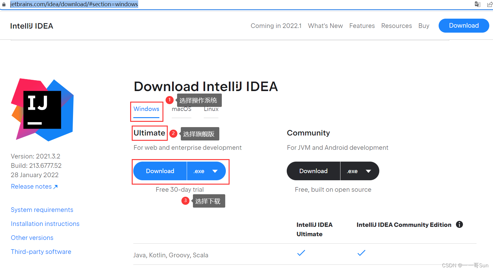 如果我们想要安装IDEA,首先需要获取到它的安装包。大家要注意,Intellij Idea是收费的产品,但是提供了免费的开源版。如果我们只是想简单学习使用,可以下载免费的开源社区版;但如果是想体验完整的功能,肯定是要下载购买付费版。当然,目前网上有很多办法可以实现避免付费,你懂的。但壹哥还是建议大家尊重知识产权,养成知识付费的意识。