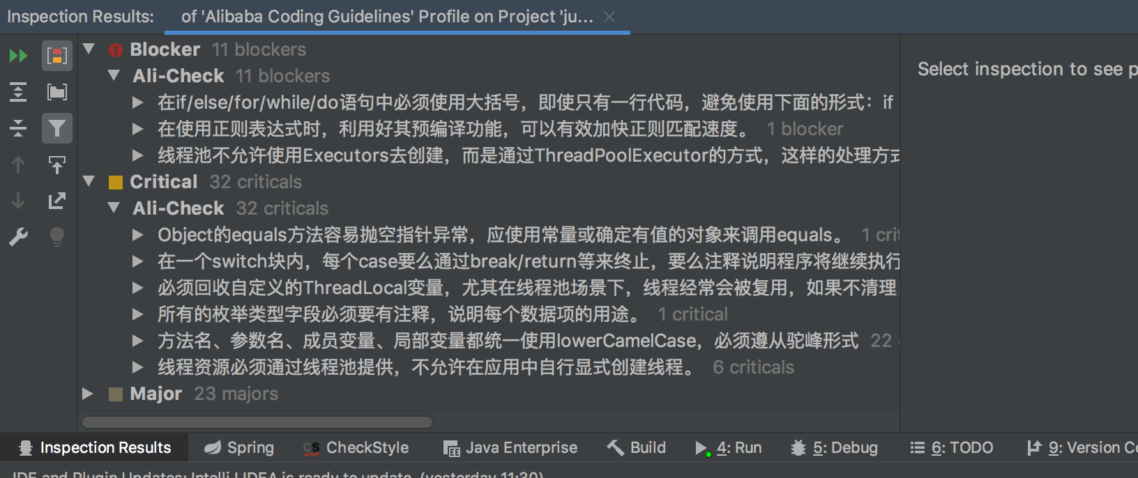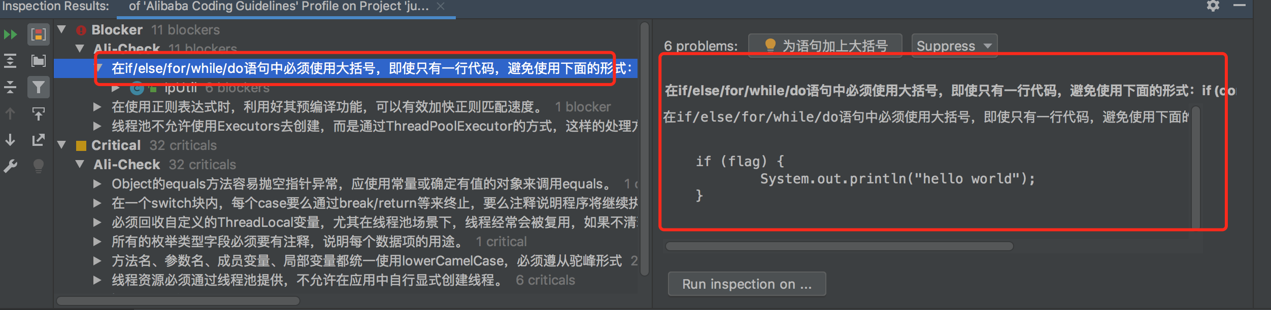 安装了该插件之后,按下快捷键:Ctrl+Alt+Shift+J,可以可对整个项目或单个文件进行编码规约扫描。