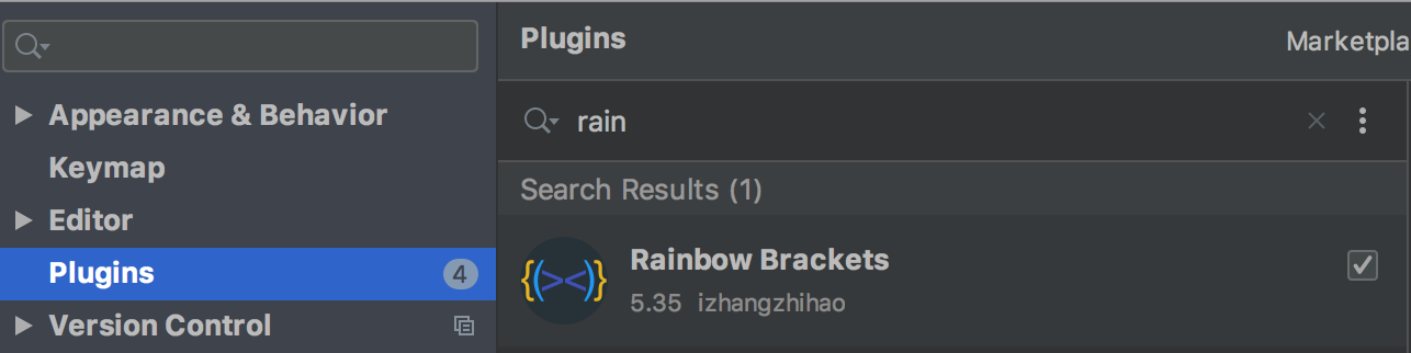 安装完插件之后,括号和反括号,在代码中会自动按照不同颜色做区分: