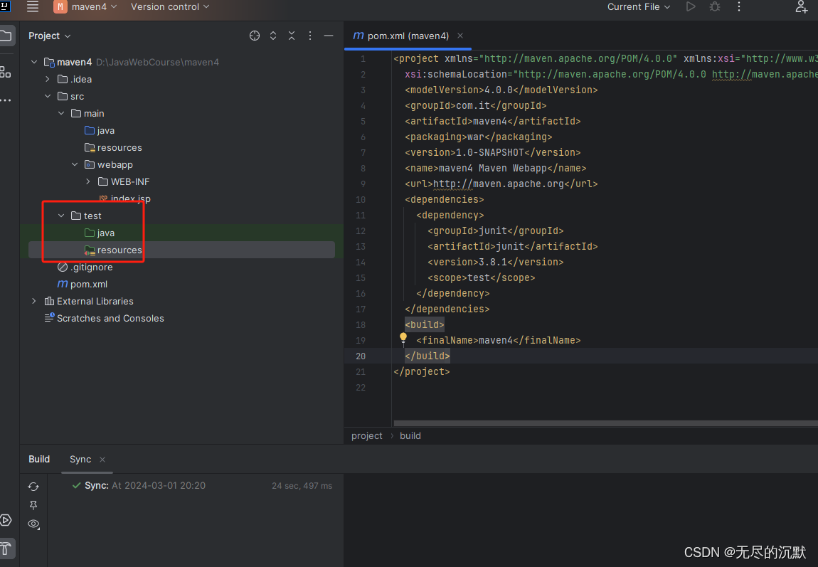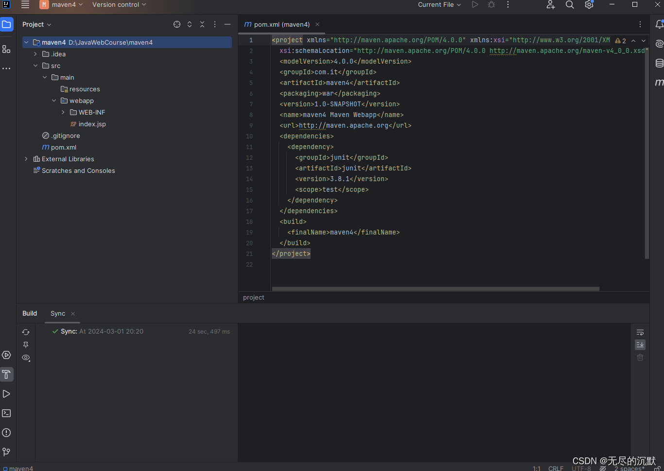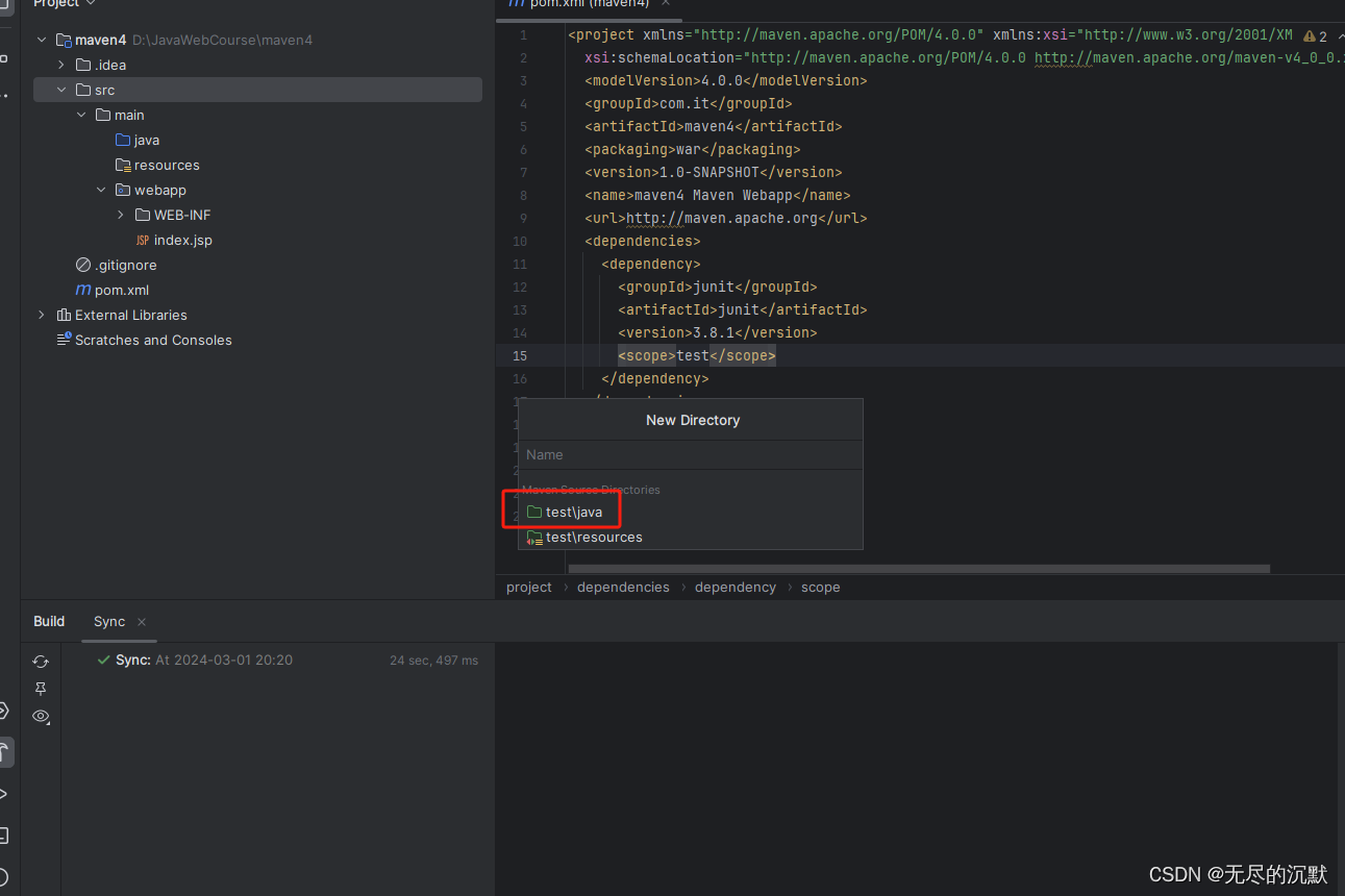 至此按模板创建一个web项目的maven项目,基本解决,接下来补充相关的java,test等文件夹,可以参考以下本主题的其他链接,2022版 的IDEA创建一个maven项目(超详细)_idea2022创建maven项目-CSDN博客