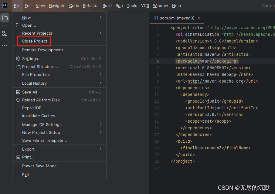 首先关闭当前项目,接着修改全局设置,重新创建项目