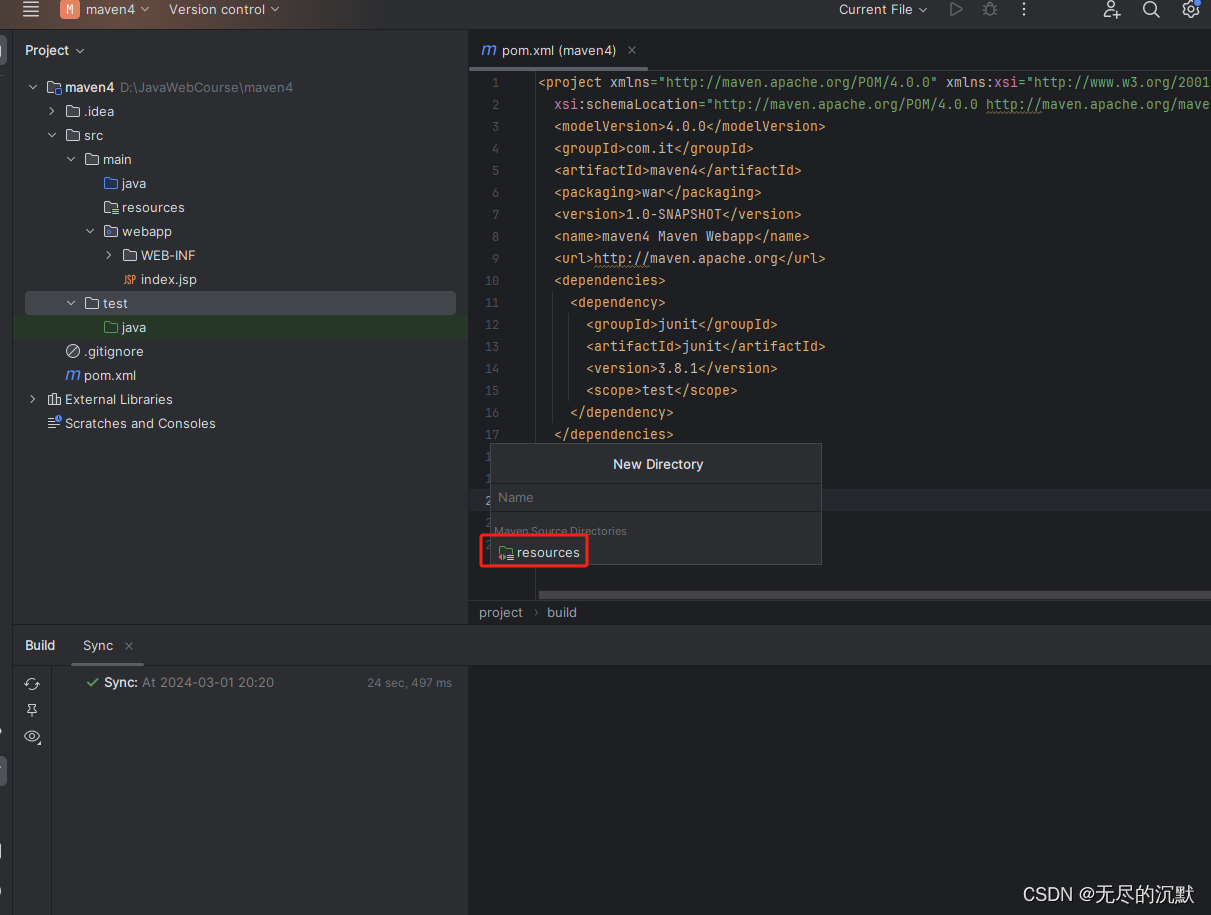 需要在main文件夹下补全两个文件夹java,resorces,怎么添加下面介绍