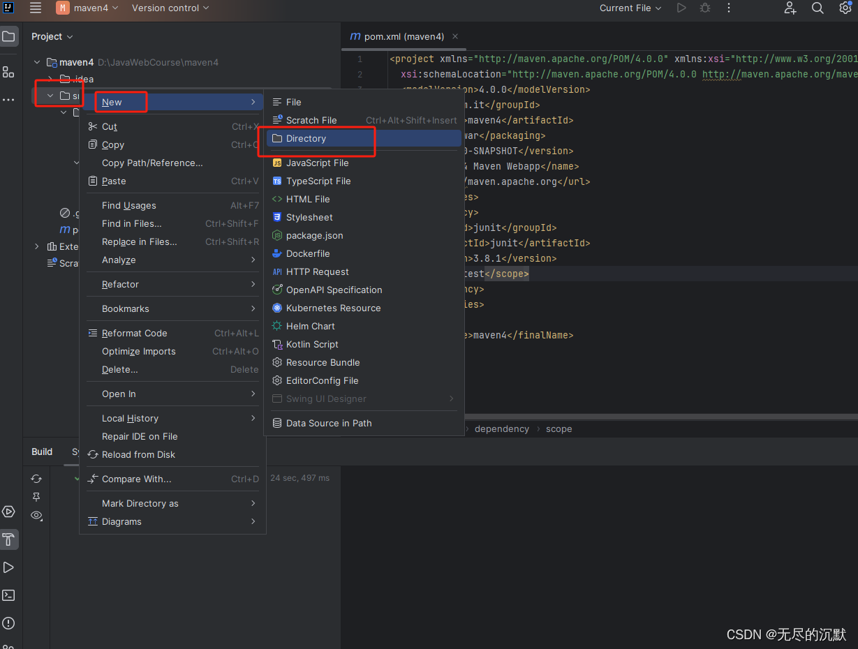 在test目录上右击New->Directory 新建java和resources文件夹、、