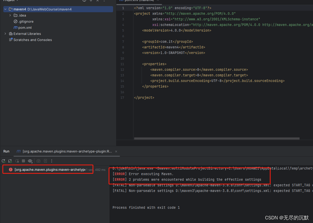 Error running‘[org.apache.maven.plugins:maven-archetype-plugin:RELEASE:generate]