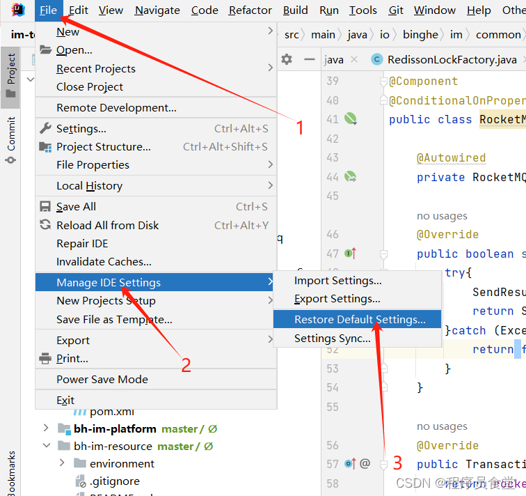 点击 file ——> Manage IDE Setting ——>Restore Default Setting
