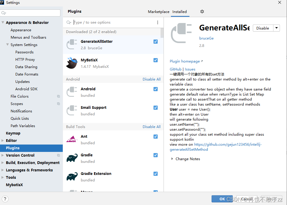 包括什么MyBatisX、GeneratrAllSetter插件都可以下载了。