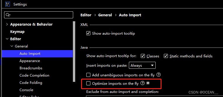 有时候在开发的过程中会产生比较多的无用的引入类,一个个去掉很麻烦,可以用以下方法批量执行,方便快捷推荐使用。方式二、修改配置(会实时自动清理,慎用)方式一、快捷键:Ctrl+Alt+O。