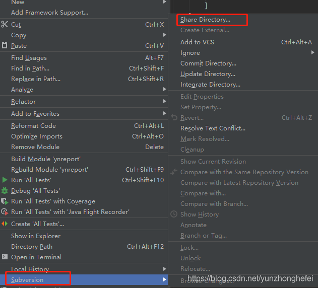 有时候 share project 菜单可能是灰色不可点,那是因为,在项目根目录下,已经有了.svn文件夹,删除之后,项目的文件会全部变成红色,就可以点击了
