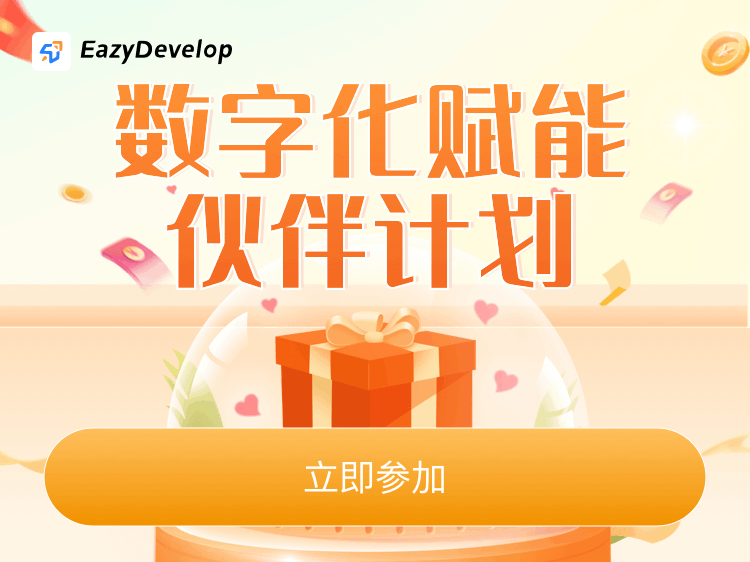 EazyDevelop 特别发起「数字化赋能伙伴计划」,携手优质合作伙伴,共同推动企业数字化转型。只需帮助团队用户在 30 天内通过 EazyDevelop 生成完整系统并投入 实际业务使用,就有机会解锁百万豪礼,无论你是开发者、企业用户,还是 生态合作伙伴,都能在 EazyDevelop 上找到属于你的惊喜!