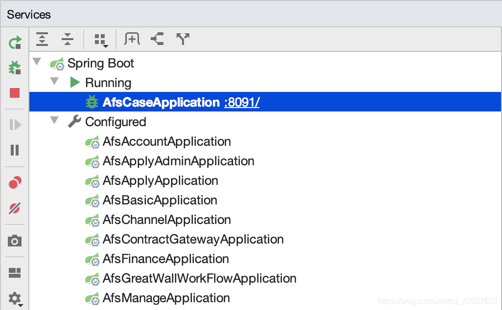Idea的Services窗口可以展示项目的入口引导类及端口,可以方便的启动及停止相关服务。