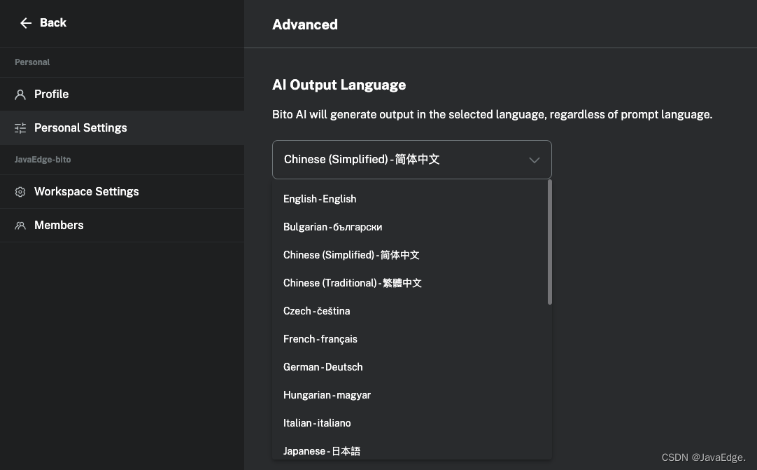 右边这个改成中文: 这样回到IDEA AI就会生成中文: