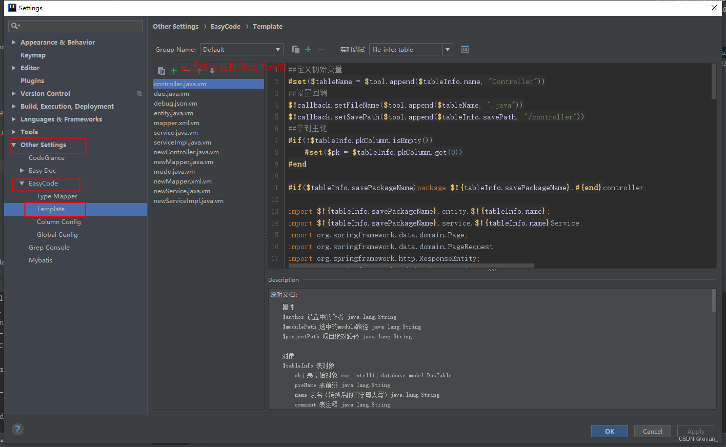 如果生成的代码格式不是想要的,可以自定义模板