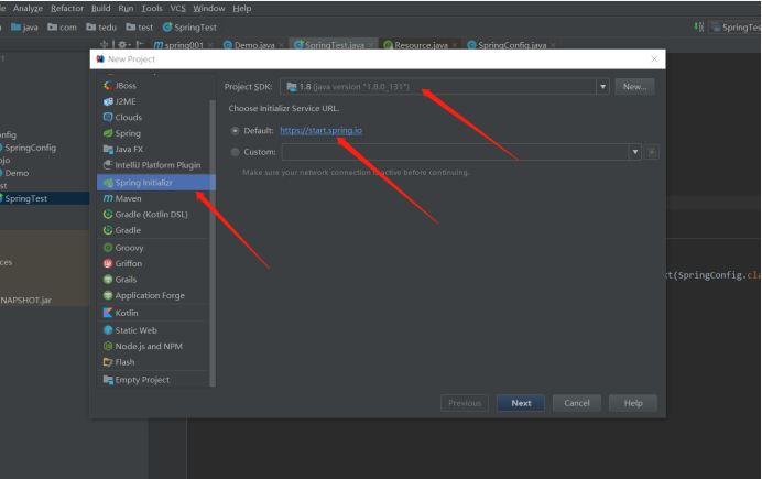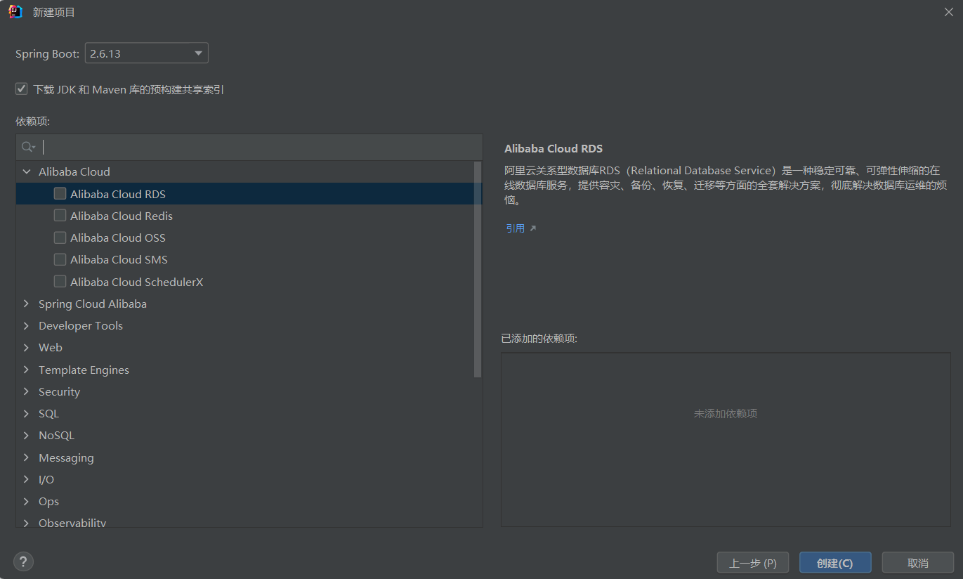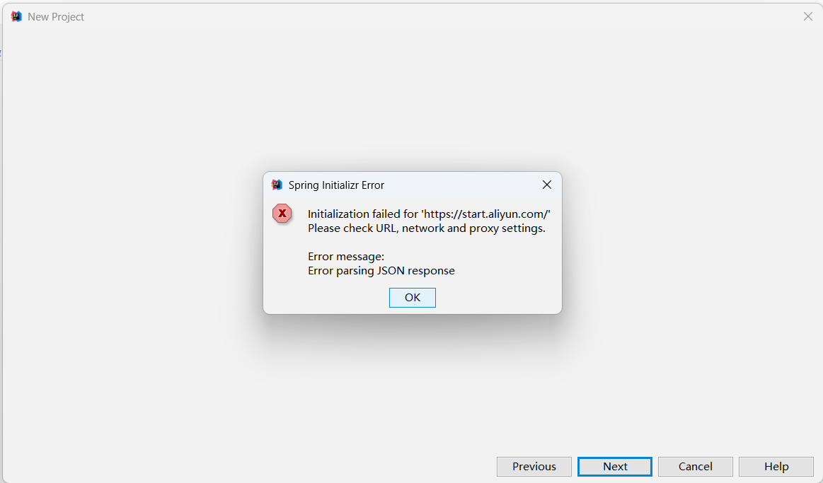 选择Spring Initializr 后之后服务器URL点击设置输入 https://aliyun.com/