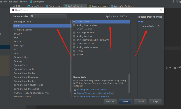 勾选自己需要的模块WEB模块,springboot项目直接使用jar包创建就行。
