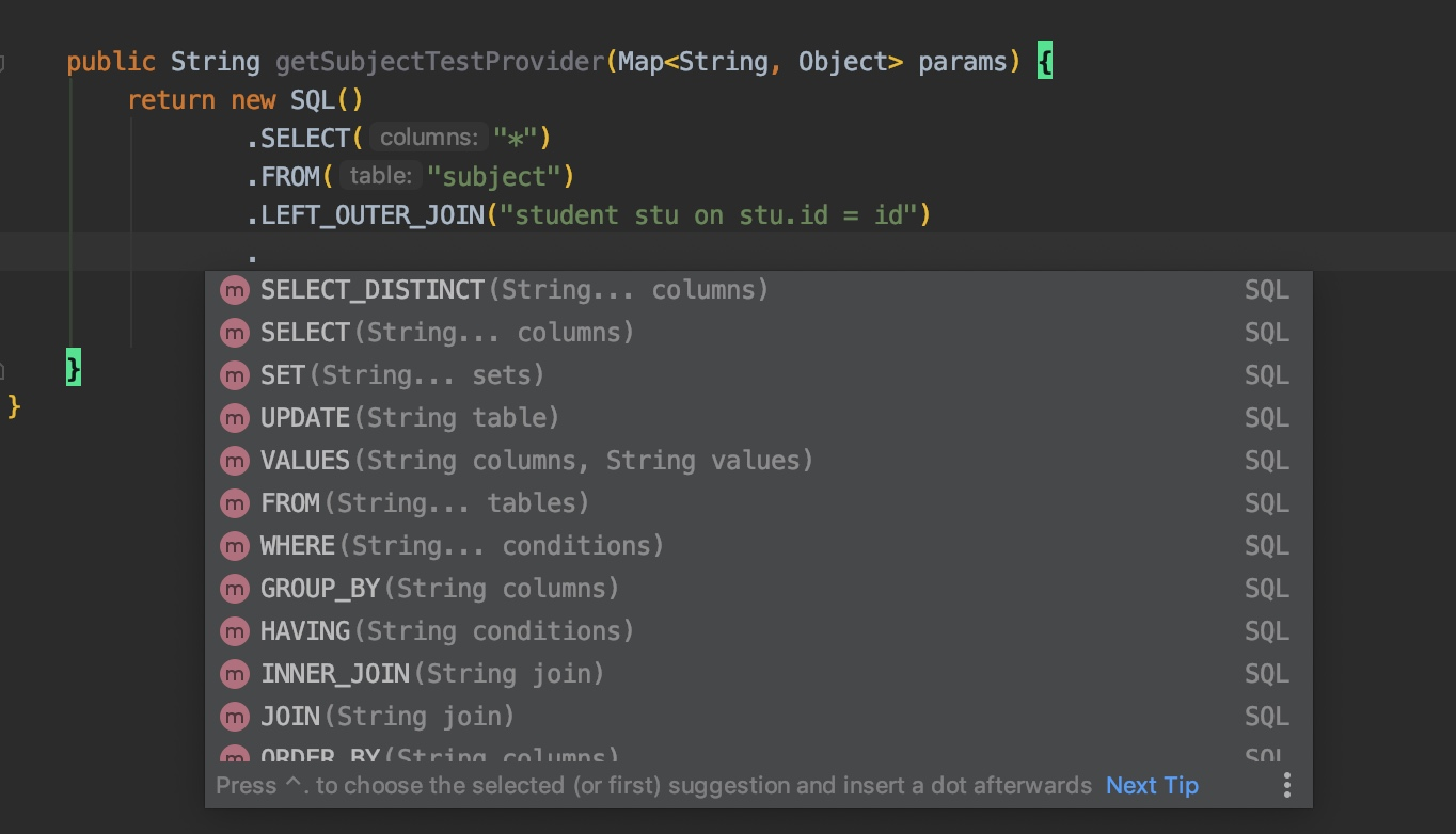 sqlProviderAnnotationTypes.add(SelectProvider.class);