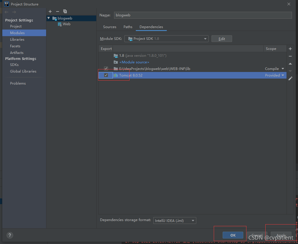 在接下来的对话框中勾选Tomcat,点击Apply OK