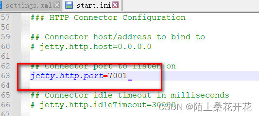 1)jetty默认端口号是8080,想要修改默认端口号,则在jetty服务器中,文件"start.ini" ,修改端口号,如下截图: