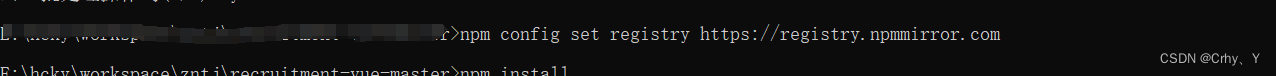 - 在命令提示符里执行 npm config set registry https://registry.npmmirror.com 切换淘宝源