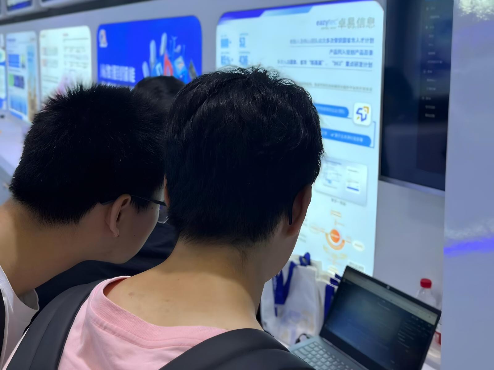在本次展会中,卓易信息自主研发的零代码开发平台 EazyDevelop 吸引了众多观众的关注,不少来宾在现场进行了注册体验。展台现场,卓易信息专业技术人员还带领多位行业从业者进行实操演示,展示了自然语言驱动的实时应用生成、多智能体协同工作以及行业模板的快速部署等核心功能,让观众直观感受到 AI+IDE 的高效与便捷。
