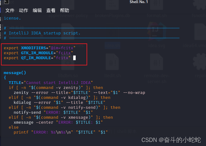 1、在idea的启动文件,idea.sh文件的开头部分添加如下代码:
