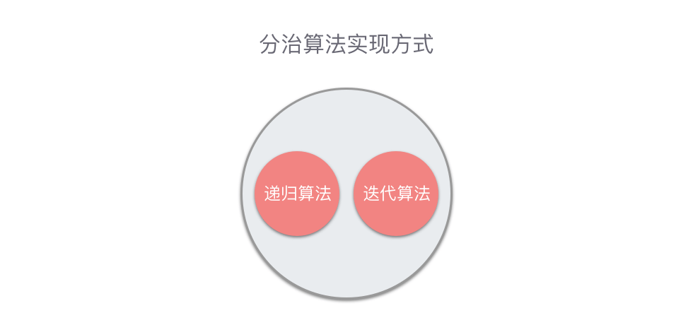 分治算法从实现方式上来划分,可以分为两种:「递归算法」和「迭代算法」。