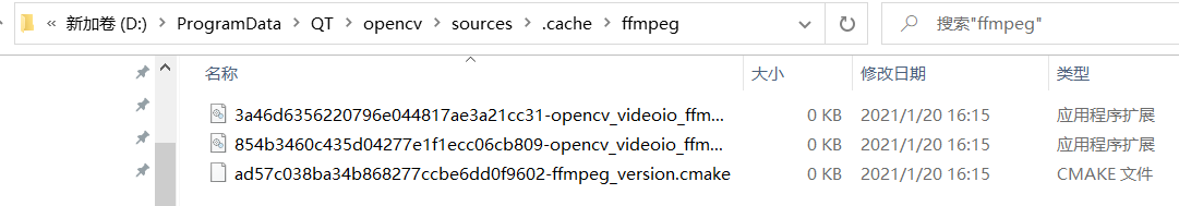在下载目录下查看:D:\ProgramData\opencv\sources\.cache\ffmpeg一看,果然3个文件大小都为0.