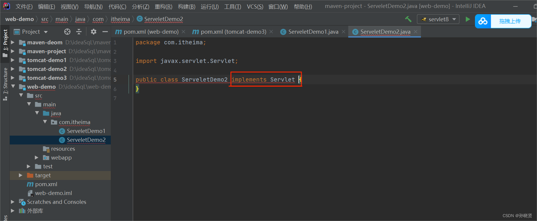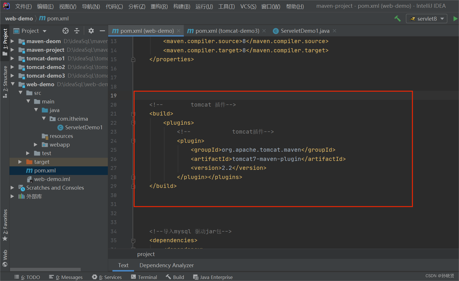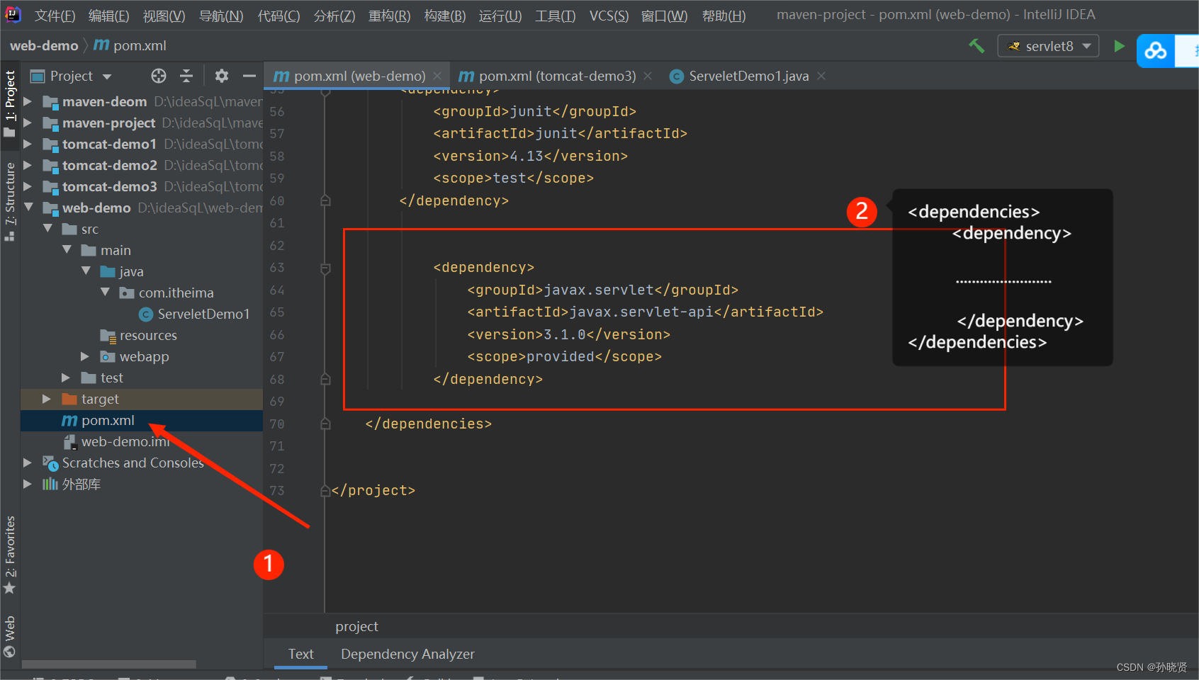 1.创建web项目,导入Servlet依赖坐标
