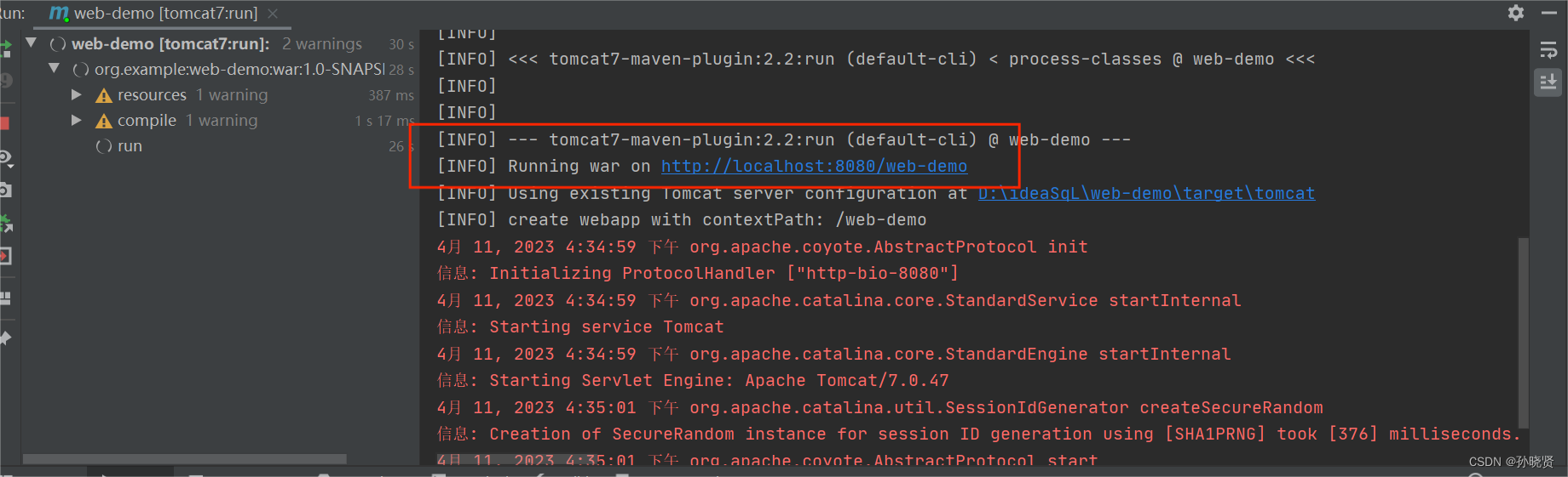4.访问:启动Tomcat,浏览输入URL访问该Servlet
