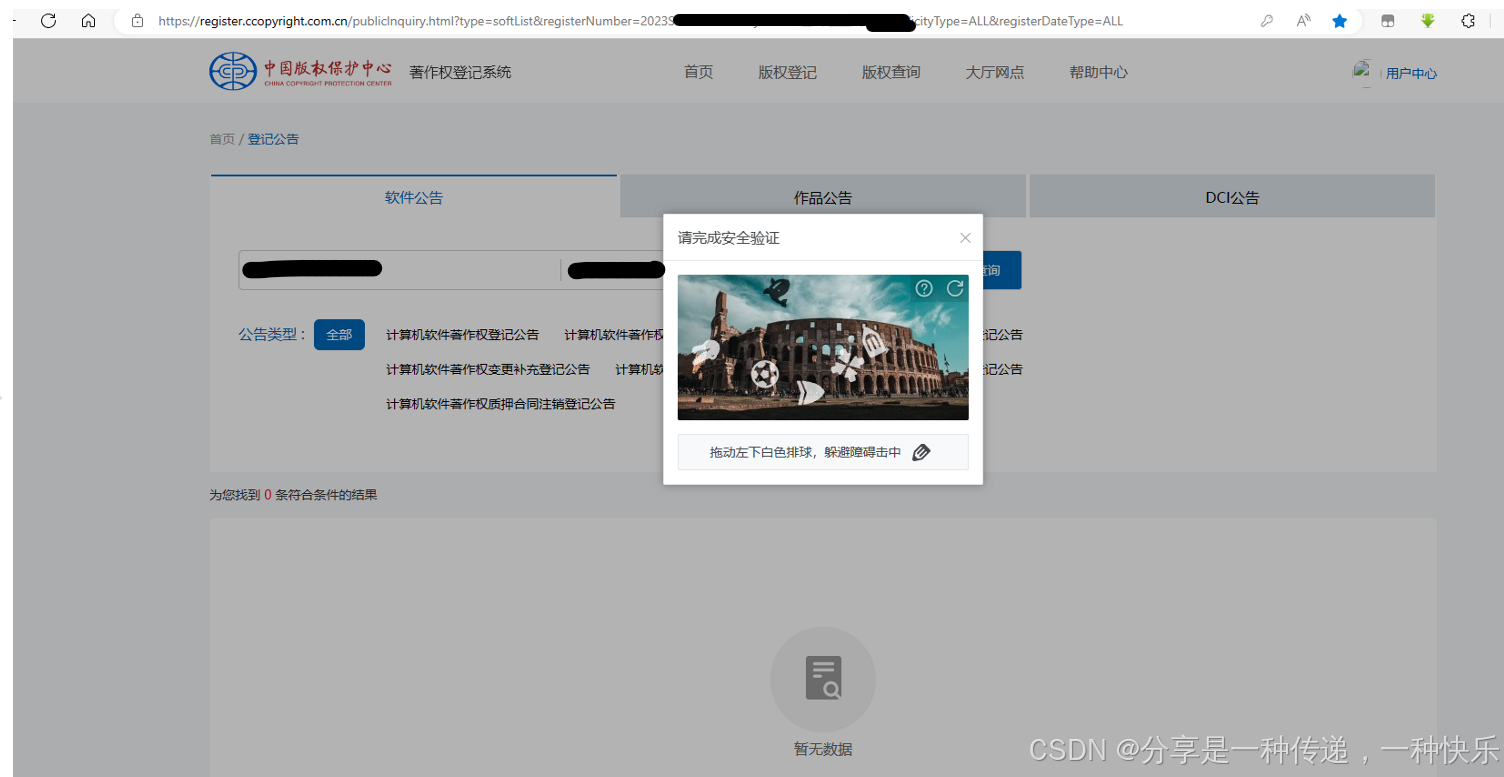 请问下这个软著查询官网的验证中——左下白色排球在哪里???——这个验证方法我也是醉了,现在很多验证我实在无语了,各种花里胡哨折腾人,有必要吗,简单一点不好吗,难道ai工具这么厉害了,非要这么难才能判断