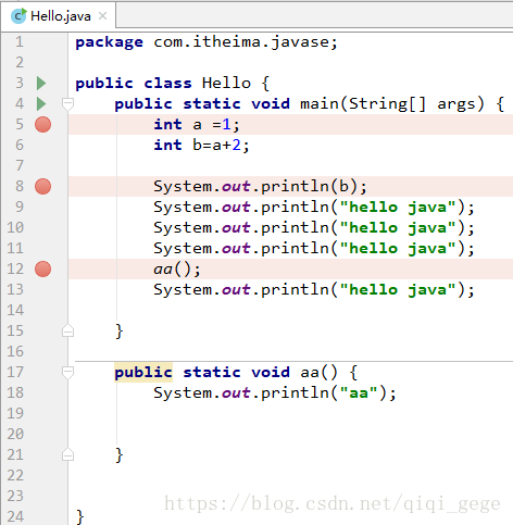 在行号的右侧点击鼠标左键,出现红色圆形图标,说明已经被打上断点