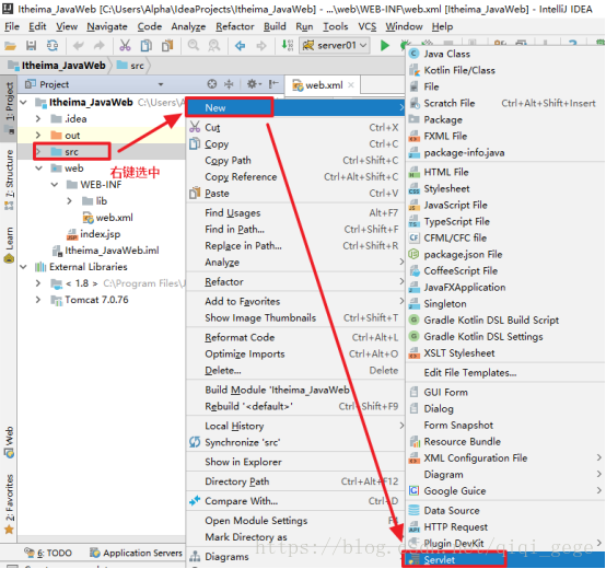 默认情况下, IDEA在使用Maven创建JavaWeb工程的时候, 并没有创建保存Java文件的目录.所以需要我们自己手动创建.