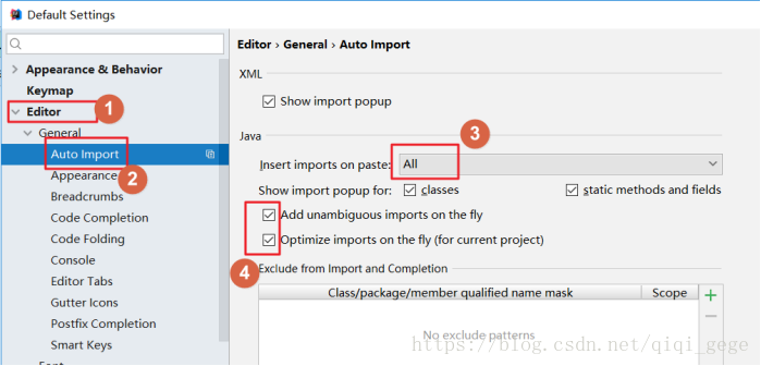 当我们复制代码时,IDEA不会自动导入对应类的包,需要手动导包,这样不够方便, 因此我们要按照图中所示进行更改