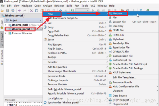 右键选中itheima_mall工程, 创建itheima_portal工程