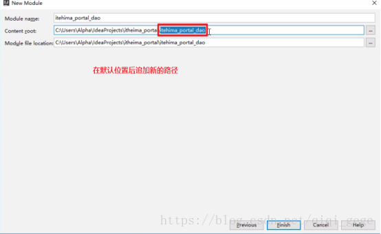 在指定保存路径的时候, 必须按照下图所示进行修改. 否则新创建的子模块pom文件会覆盖itheima_portal的pom文件