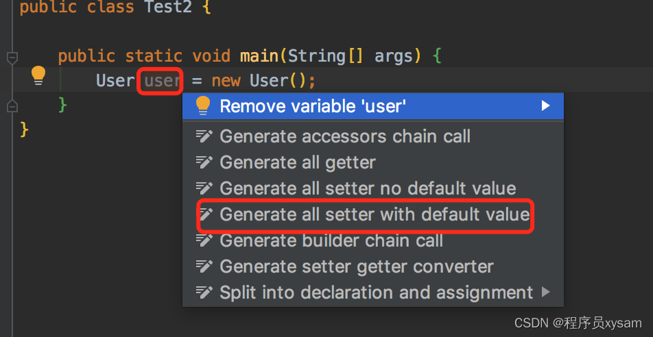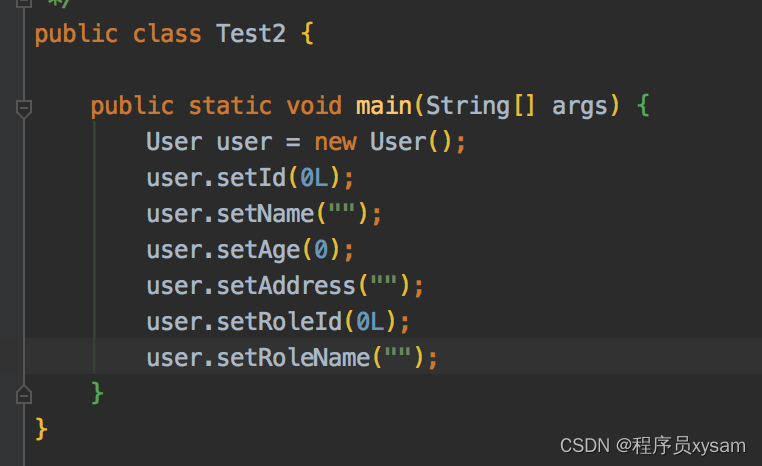 该User类中包含了:成员变量、getter/setter方法、构造方法、equals、hashCode方法。