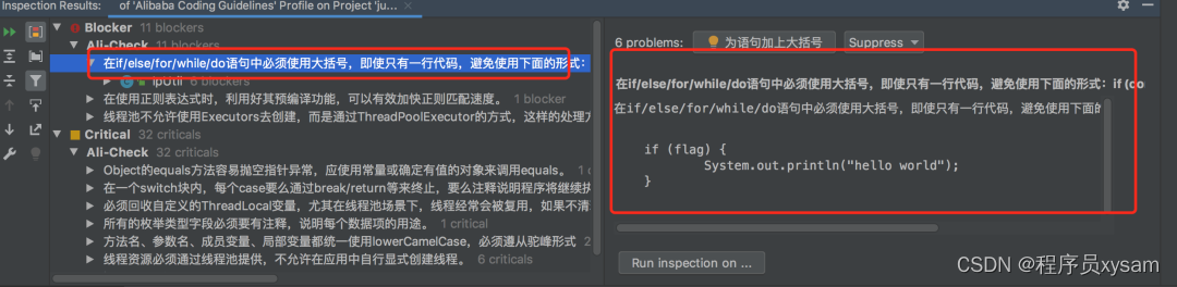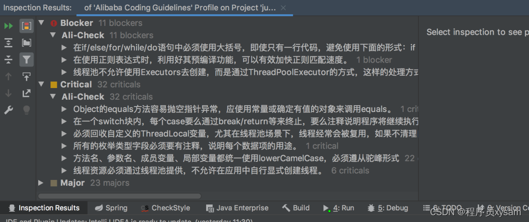 安装了该插件之后,按下快捷键:Ctrl+Alt+Shift+J,可以可对整个项目或单个文件进行编码规约扫描。