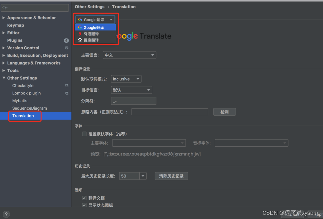 安装完Translation插件之后,在other settings中多了一个Translation菜单。