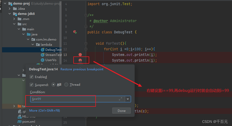 场景我们在调试时,有时会遇到for循环报异常,但这个异常不可能第一个就出现,可能是比较靠后,不可能一直按下步吧,有没有办法直接定位到某一行进行调试呢?解决方案效果...
