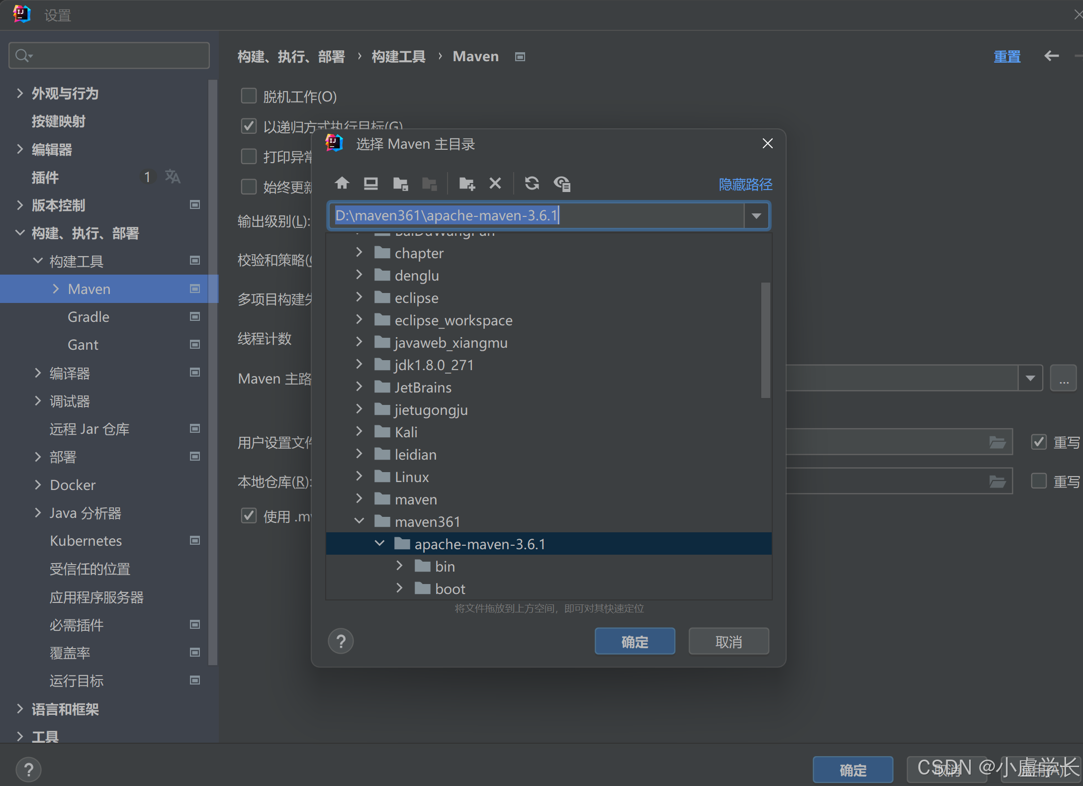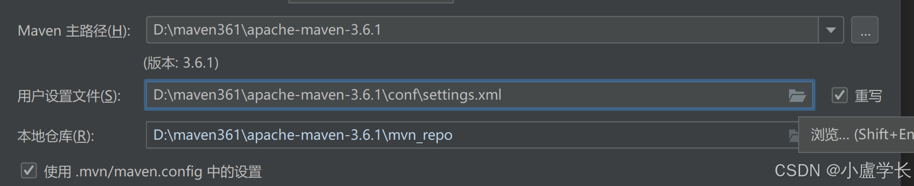 在用户设置文件中点击路径重写,选择下载好的maven中的conf\settings.xml