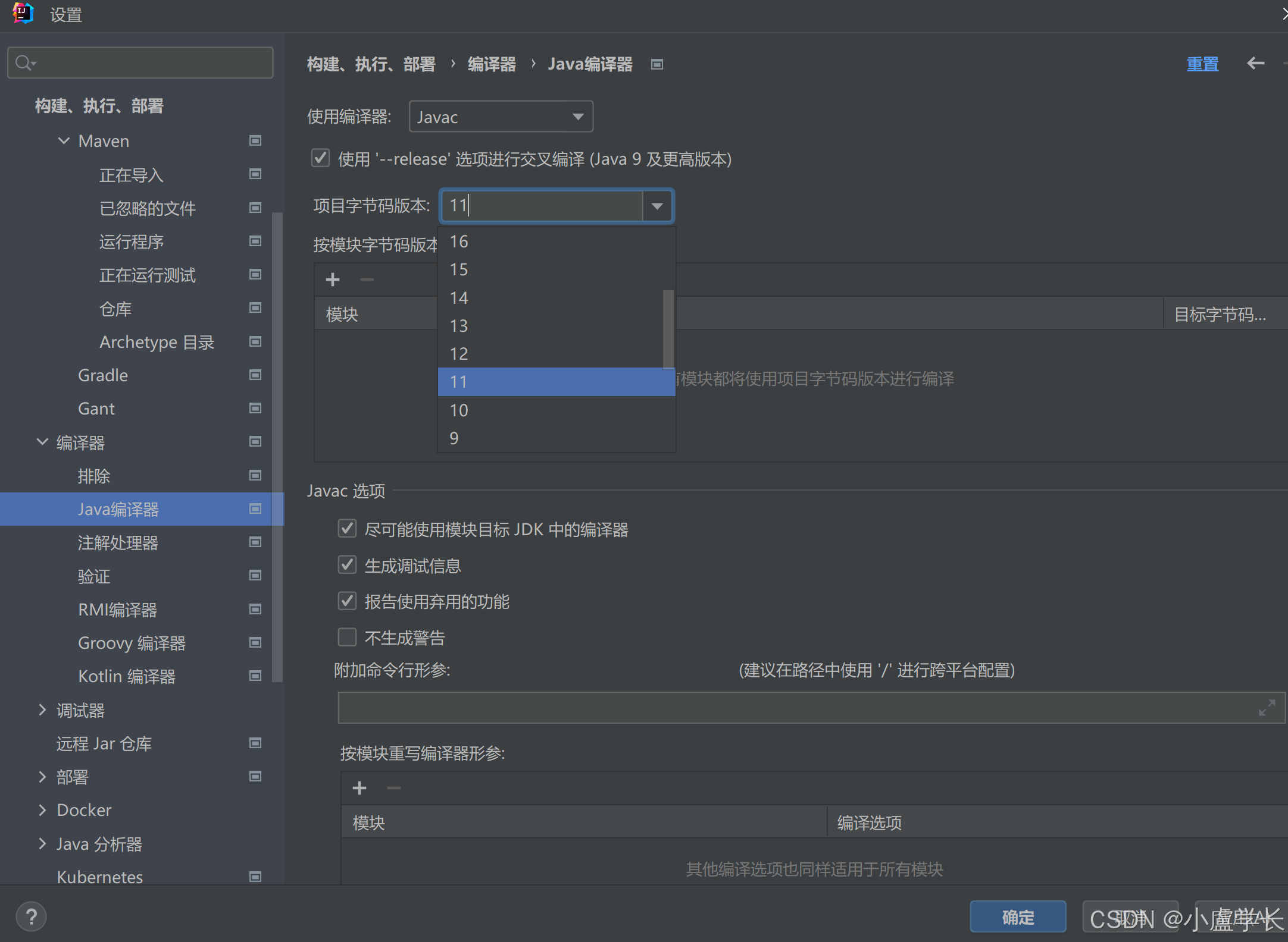 指定当前项目的字节码版本选择11,点击apply