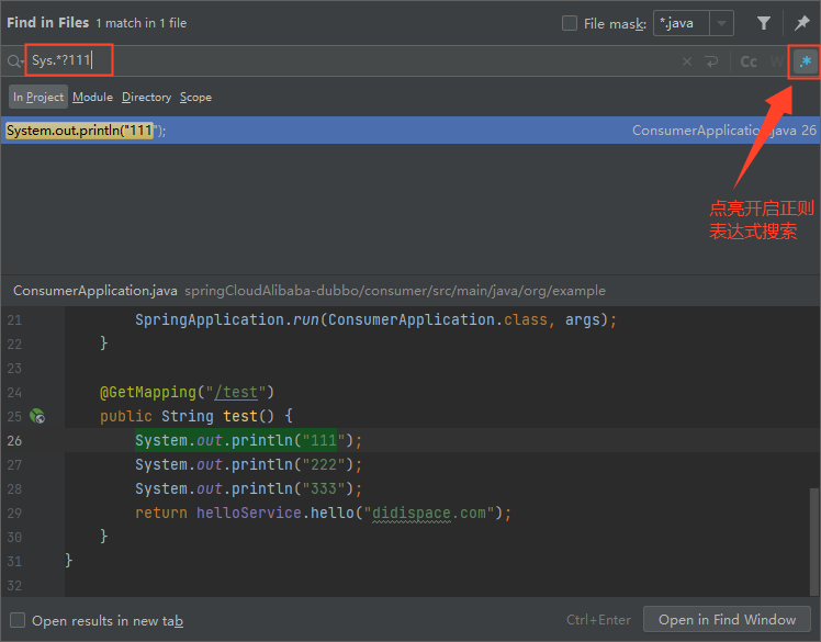 需要在 Regex ? 中打上勾即可开启正则匹配