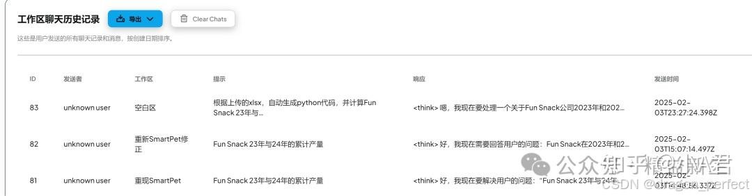 1. 本地对话记录 可以通过“小扳手标志的“配置”——“管理员”——“对话历史记录”,导出“工作区聊天历史记录”,支持csv和json格式,小A君通常导出用json格式,用sublime text 打开查看(或在Python中)。